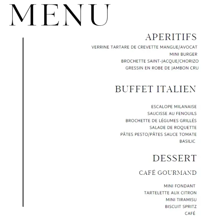 💶 Prix : 40€ par personne ( Les boissons ne sont pas incluses dans le prix, à l'exception de l'apéritif. )